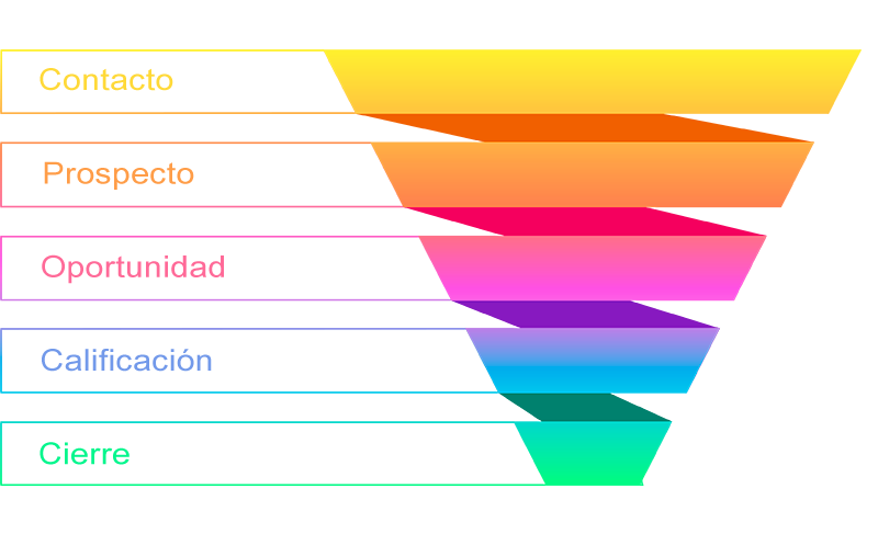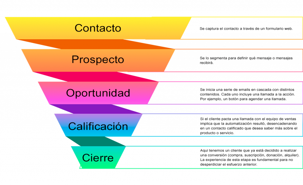 Tal como se describe en el embudo (funnel) anterior hay 5 etapas: